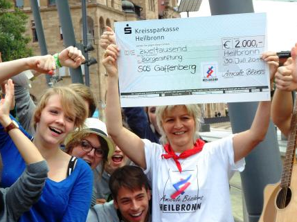Spendenüberreichung durch die Amicale beim Empfang der Gaffenberg-Gäste aus Béziers